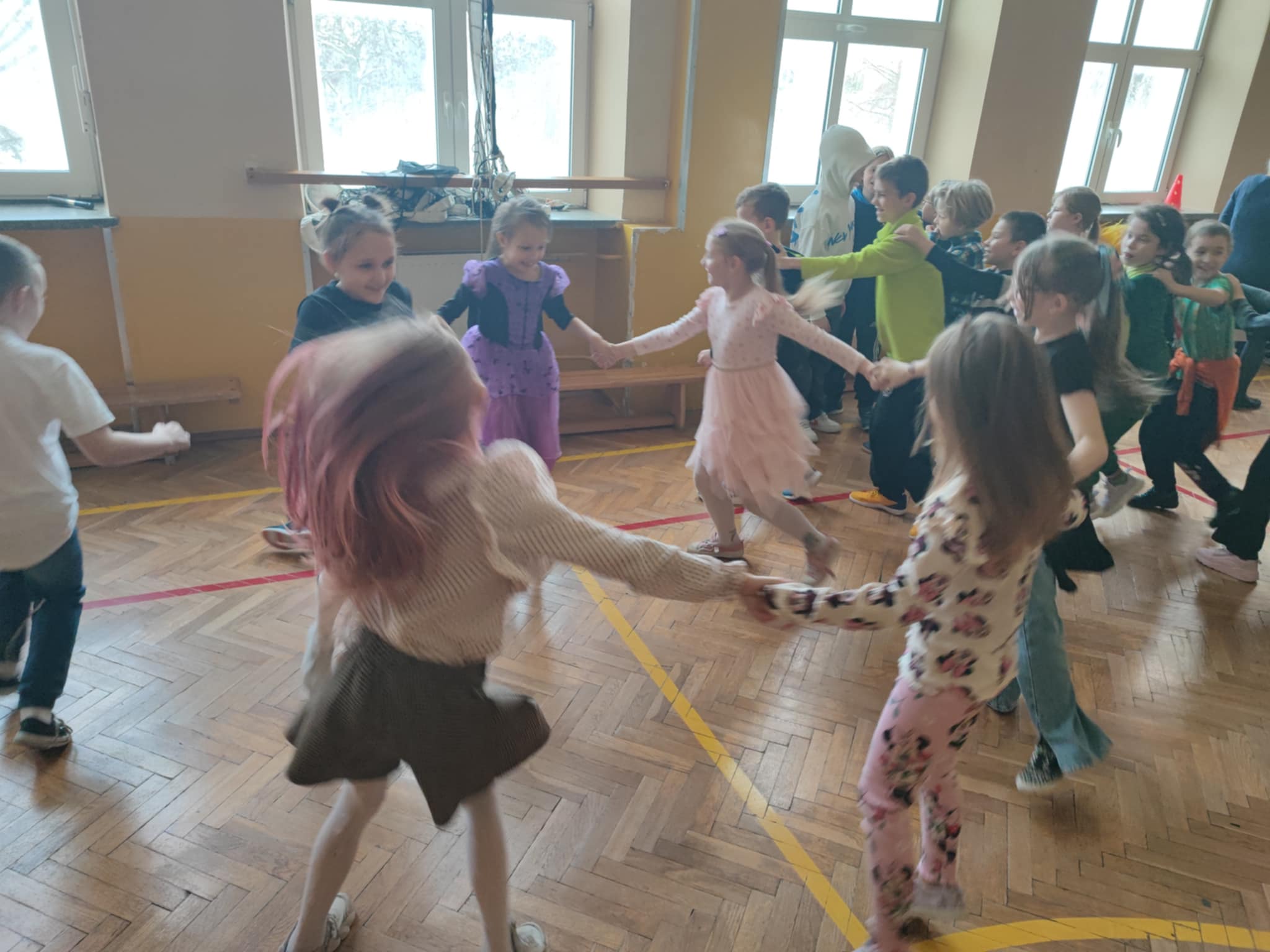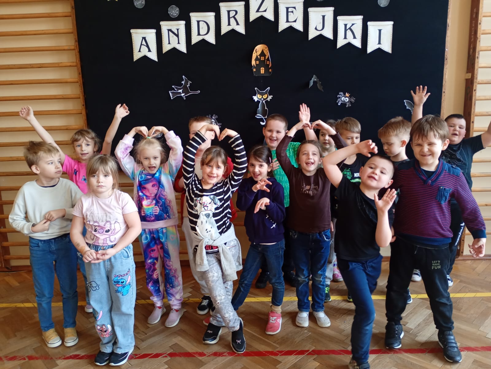 Następnego dnia po zabawie klas starszych w naszej szkole odbył się długo wyczekiwany bal andrzejkowy dla uczniów klas 1–3. Od rana korytarze wypełniły się barwnymi postaciami, bo większość dzieci przyszła w kreatywnych przebraniach, które wprowadziły wszystkich w prawdziwie magiczny nastrój.