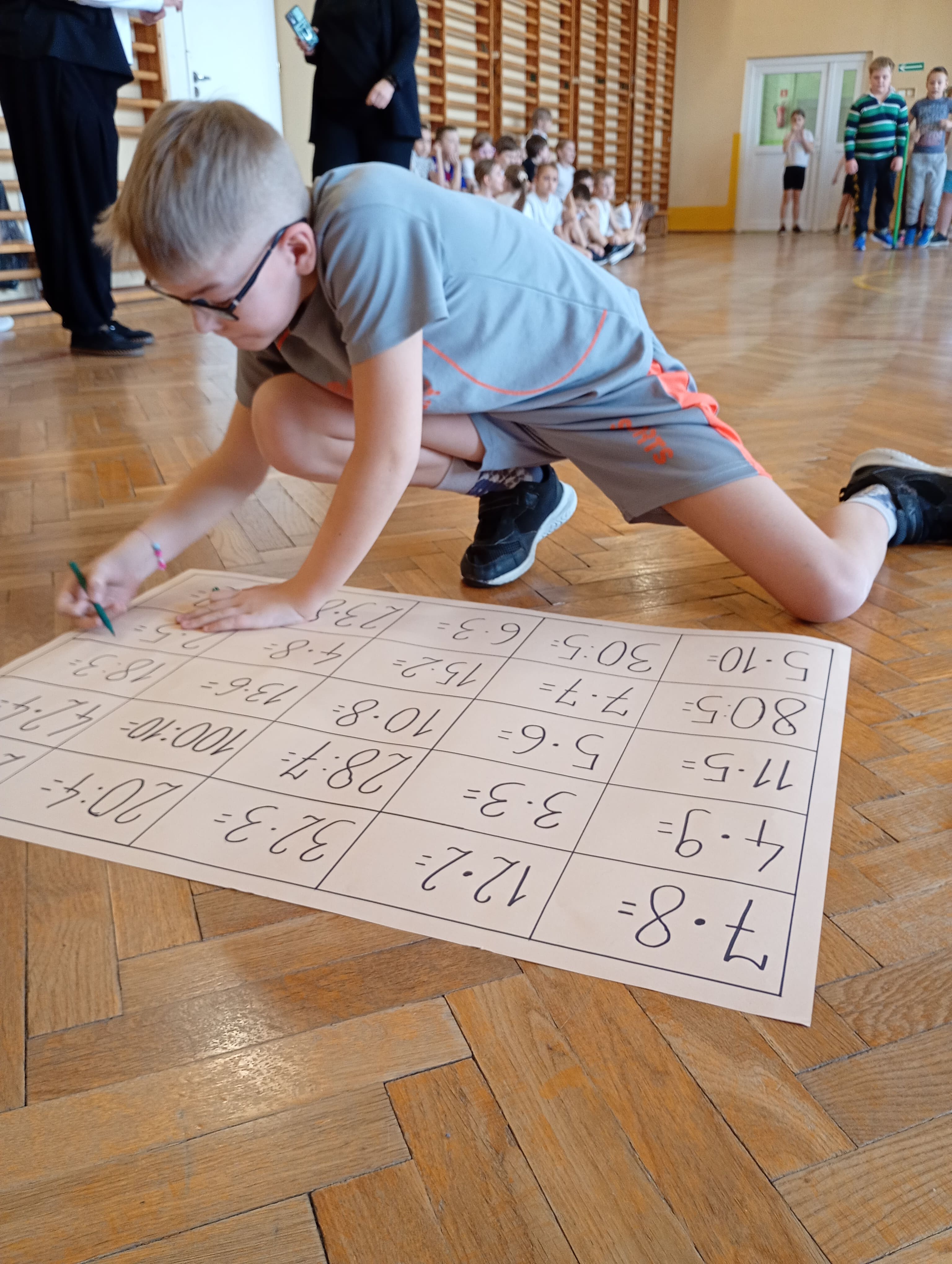 Podczas wydarzenia dzieci wzięły udział w trzech konkurencjach matematyczno-ruchowych, dostosowanych do poziomu wiedzy poszczególnych klas. Uczniowie mogli nie tylko sprawdzić swoje umiejętności liczenia i logicznego myślenia, ale przede wszystkim działać razem, wspierać się i uczyć poprzez współpracę. Zadania wymagały sprytu, spostrzegawczości oraz dobrej komunikacji w zespole, dlatego każda drużyna mogła poczuć, jak ważna w nauce jest wzajemna pomoc i zaangażowanie.
