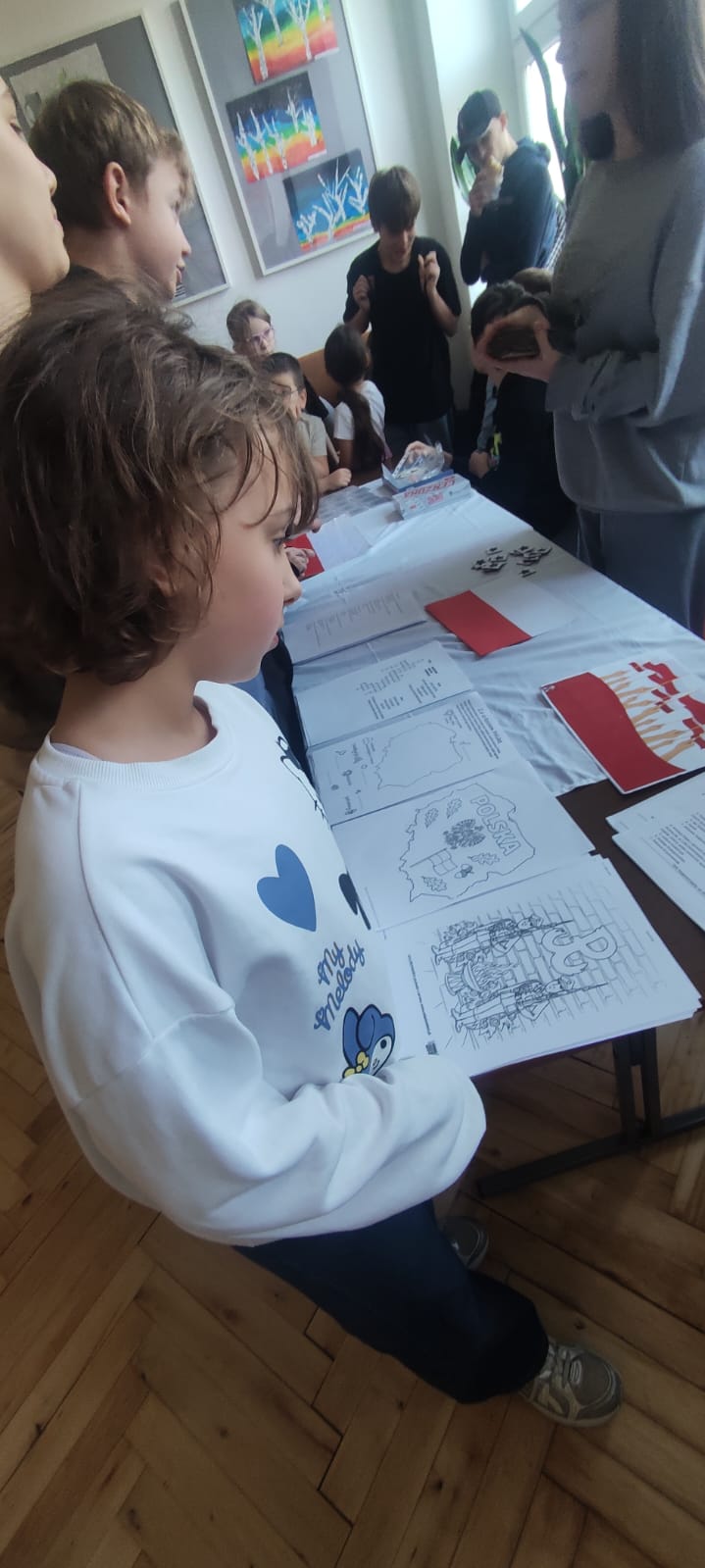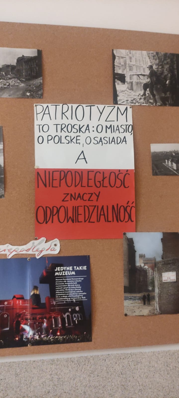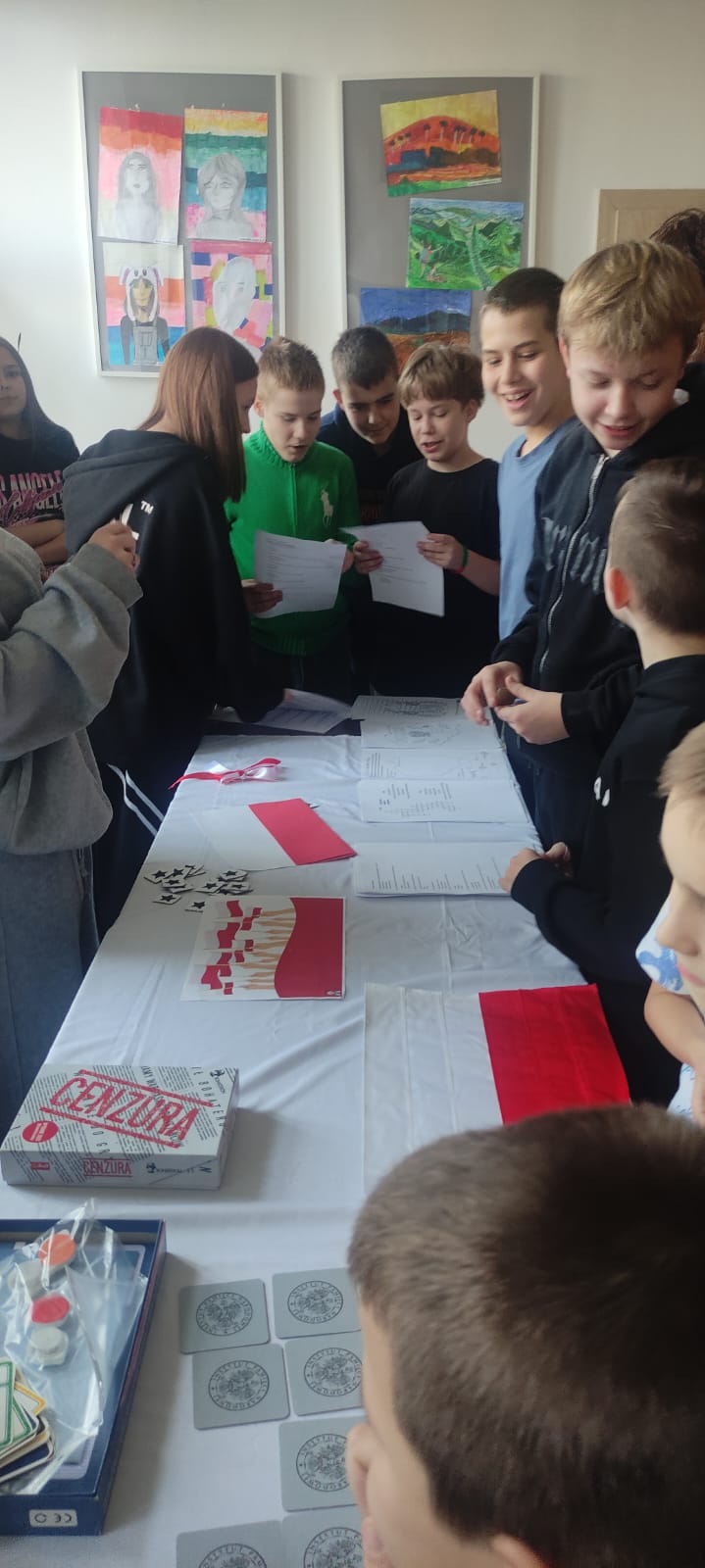 Wszystkie prace plastyczne i plakaty złożyły się na okolicznościową wystawę upamiętniającą tych, którzy walczyli o Niepodległą. Dodatkowo uczniowie klasy 8b zorganizowali stoisko patriotyczne, na którym znalazły się gry edukacyjne, krzyżówki, wykreślanki oraz kolorowanki dotyczące historii Polski.