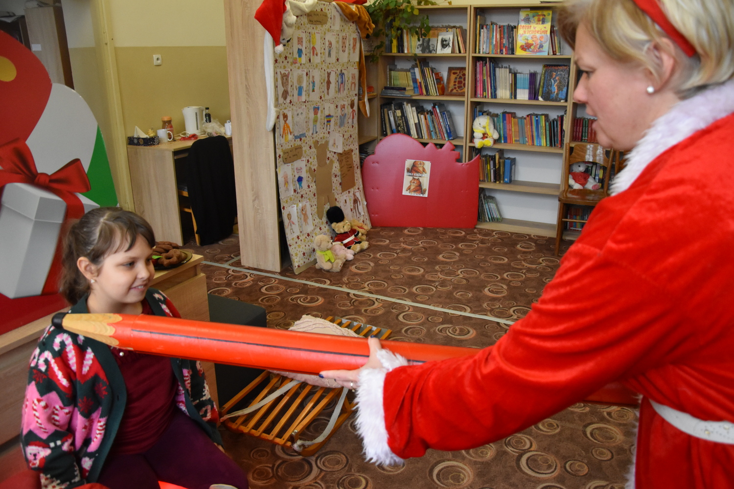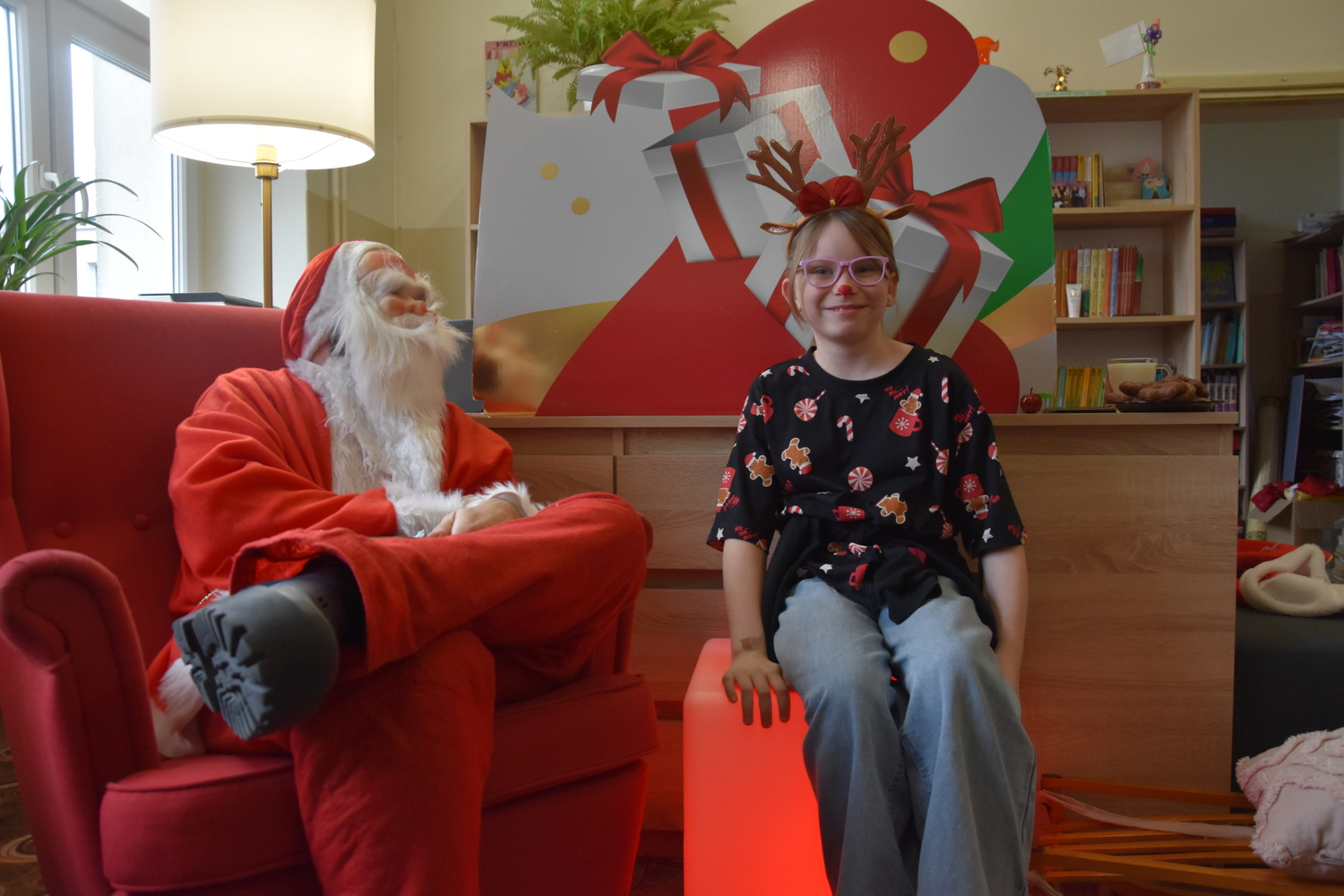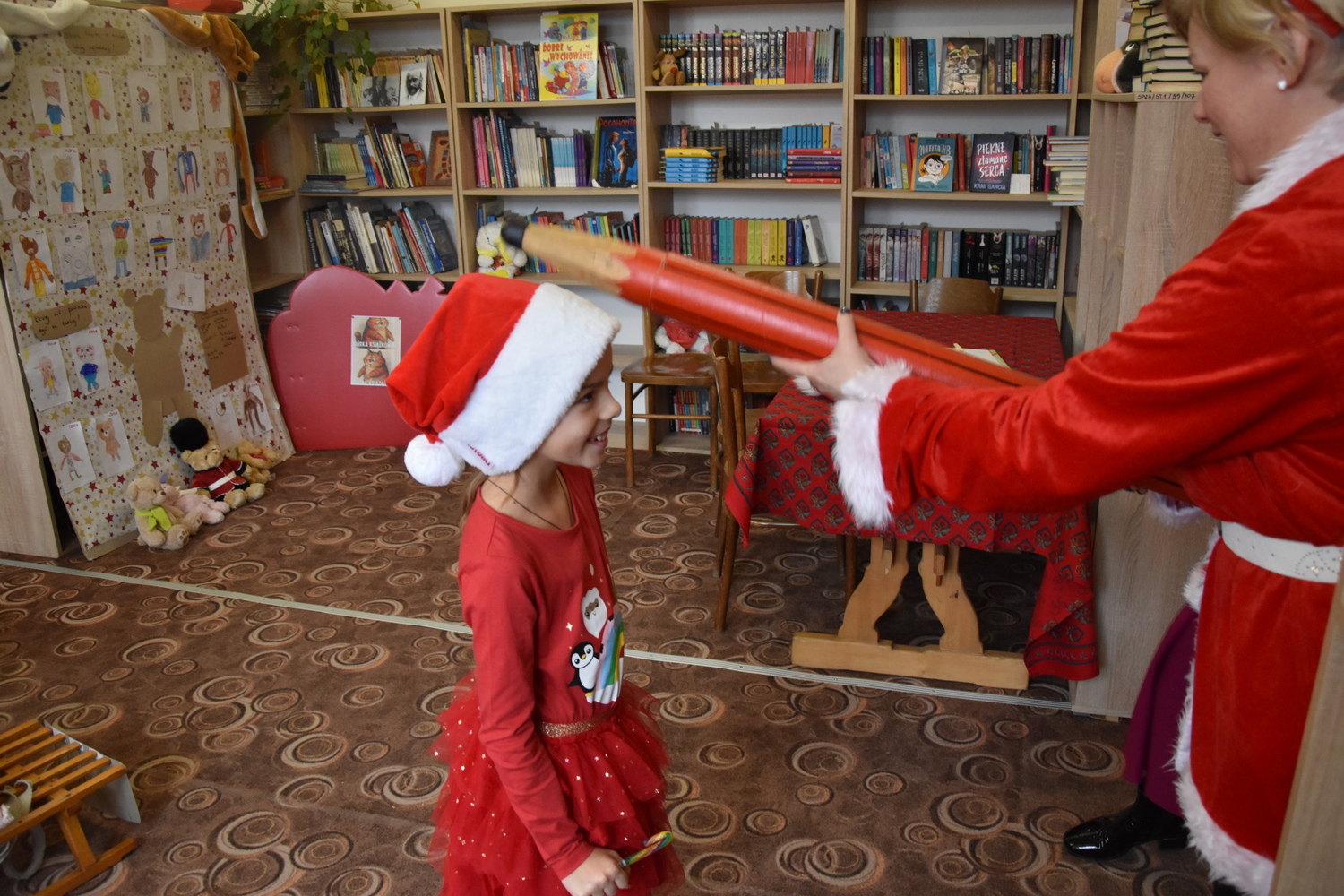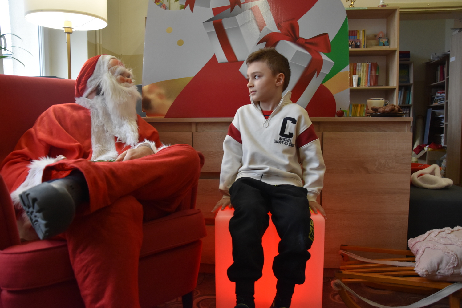 Podczas spotkania Mikołaj zwrócił się do dzieci z krótkim, wesołym pytaniem, sprawdzając ich gotowość do rozpoczęcia przygody z książką. Uczniowie poradzili sobie z nim doskonale, dzięki czemu każdy z nich mógł zostać uroczyście pasowany przez wyjątkową pomocnicę Mikołaja.