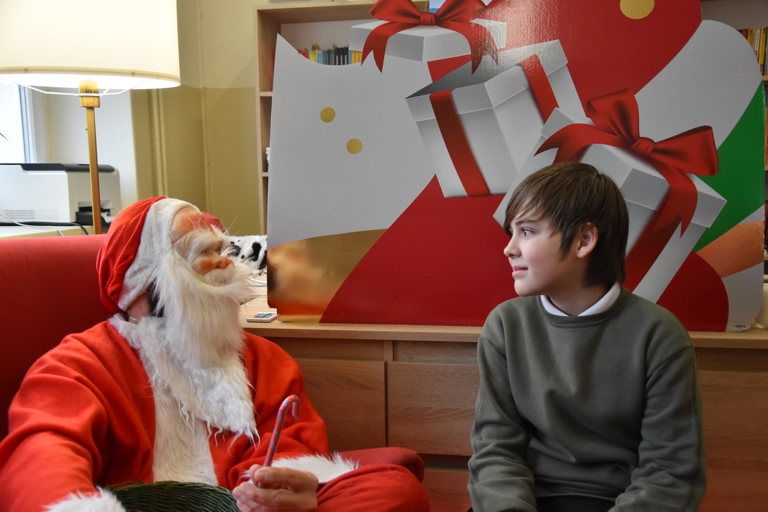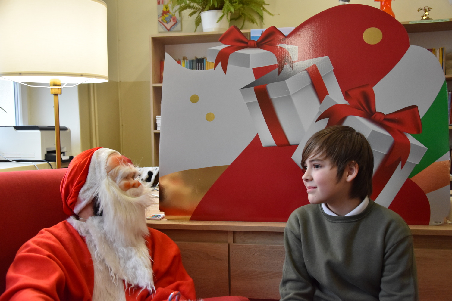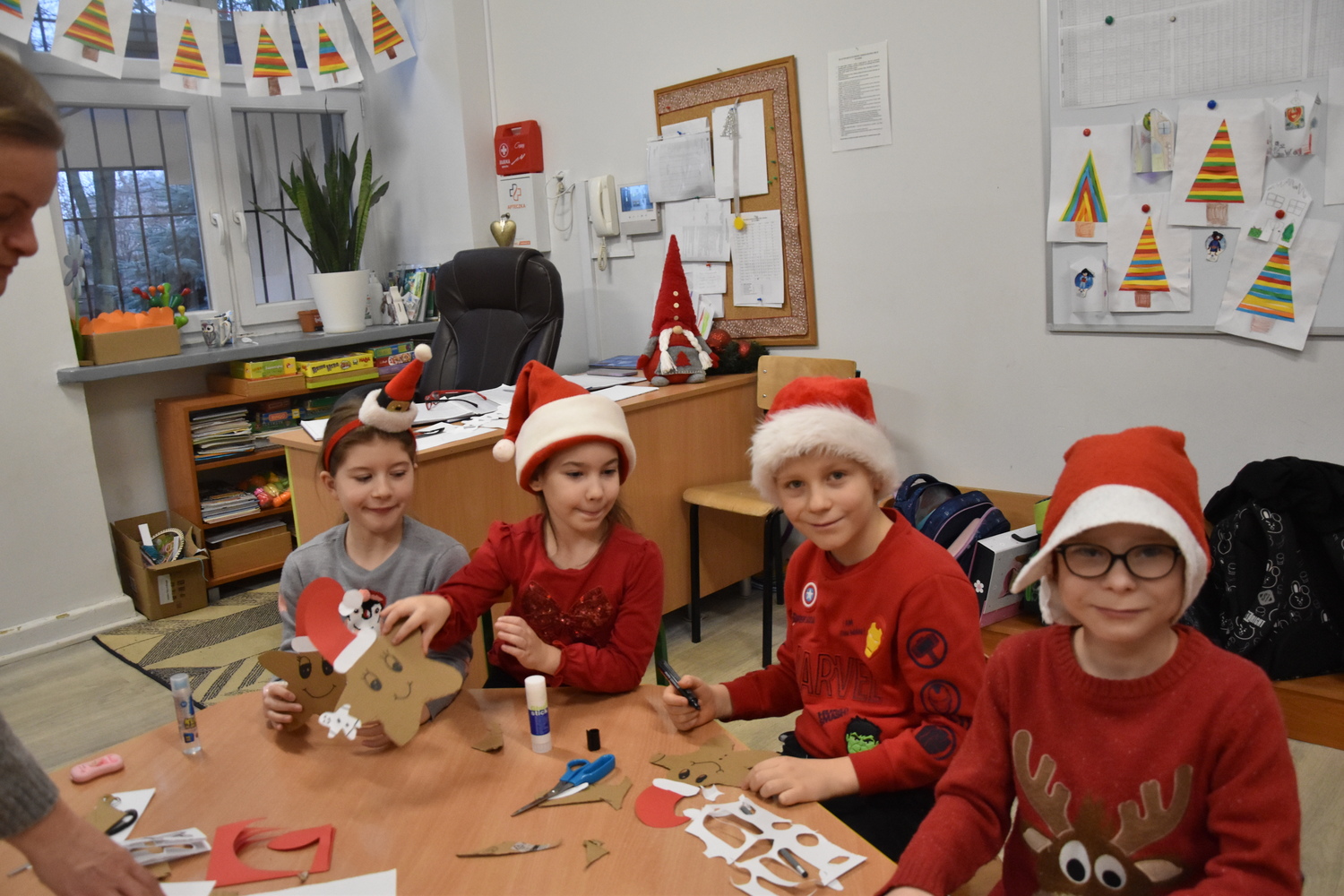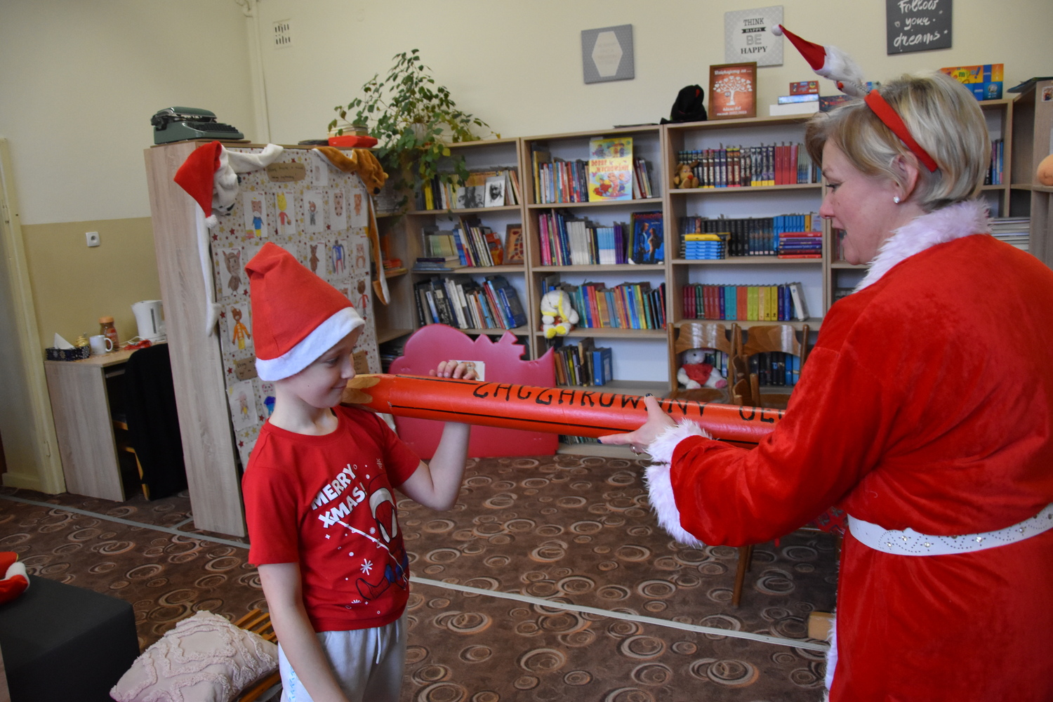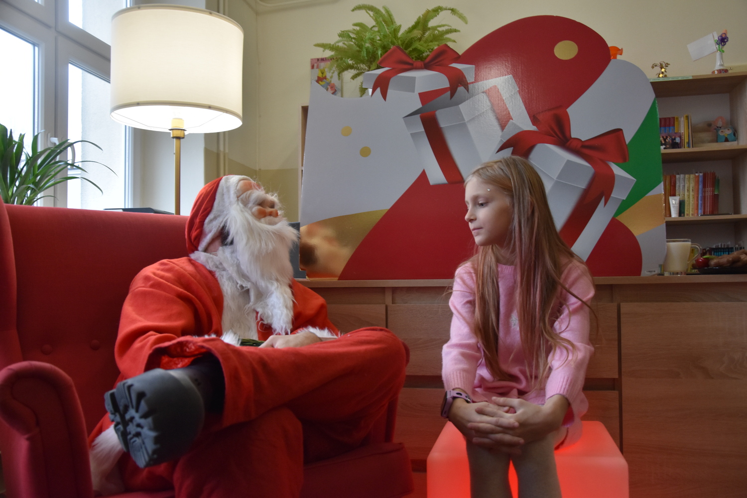 Podczas spotkania Mikołaj zwrócił się do dzieci z krótkim, wesołym pytaniem, sprawdzając ich gotowość do rozpoczęcia przygody z książką. Uczniowie poradzili sobie z nim doskonale, dzięki czemu każdy z nich mógł zostać uroczyście pasowany przez wyjątkową pomocnicę Mikołaja.