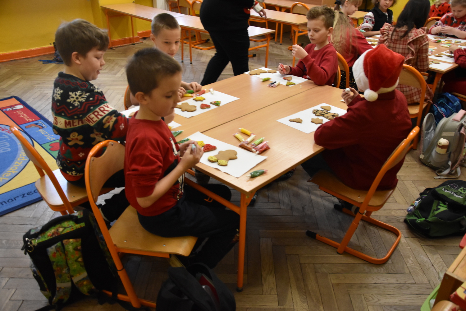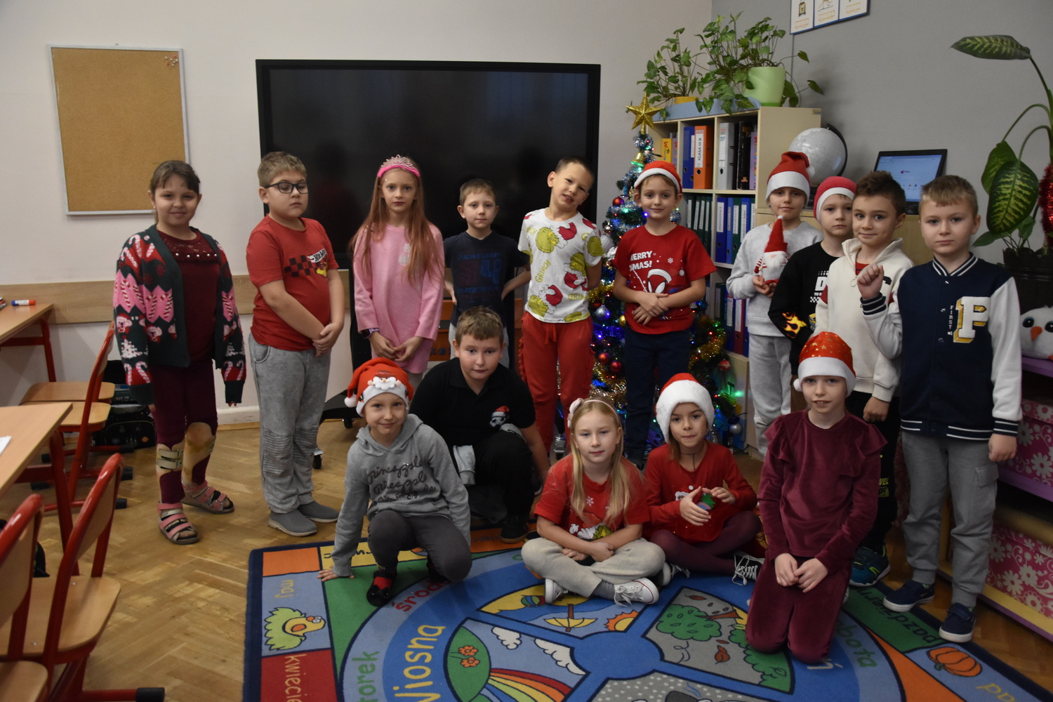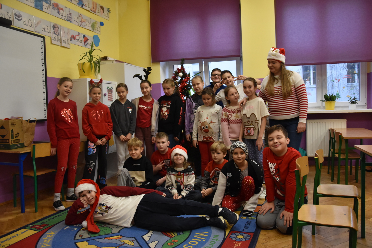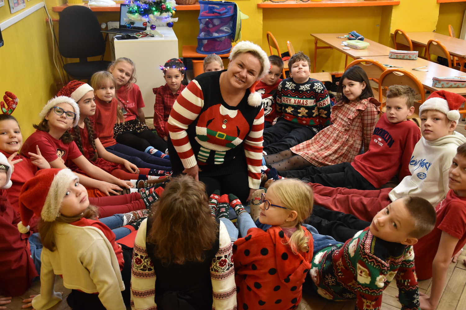 Na zakończenie Mikołaj obdarował wszystkich uczniów słodkimi upominkami, co wywołało wiele uśmiechów i dodatkowo podkreśliło świąteczny charakter spotkania.