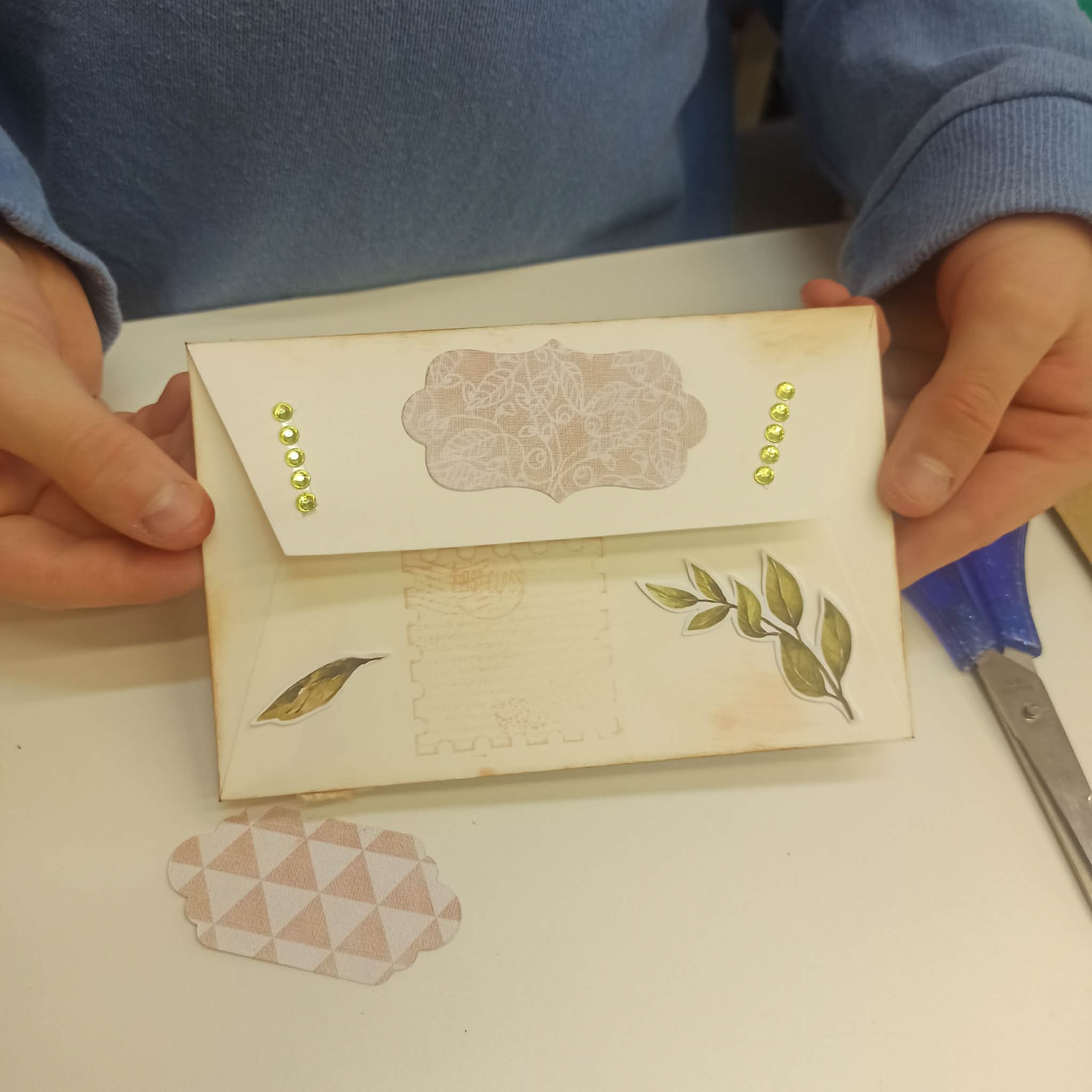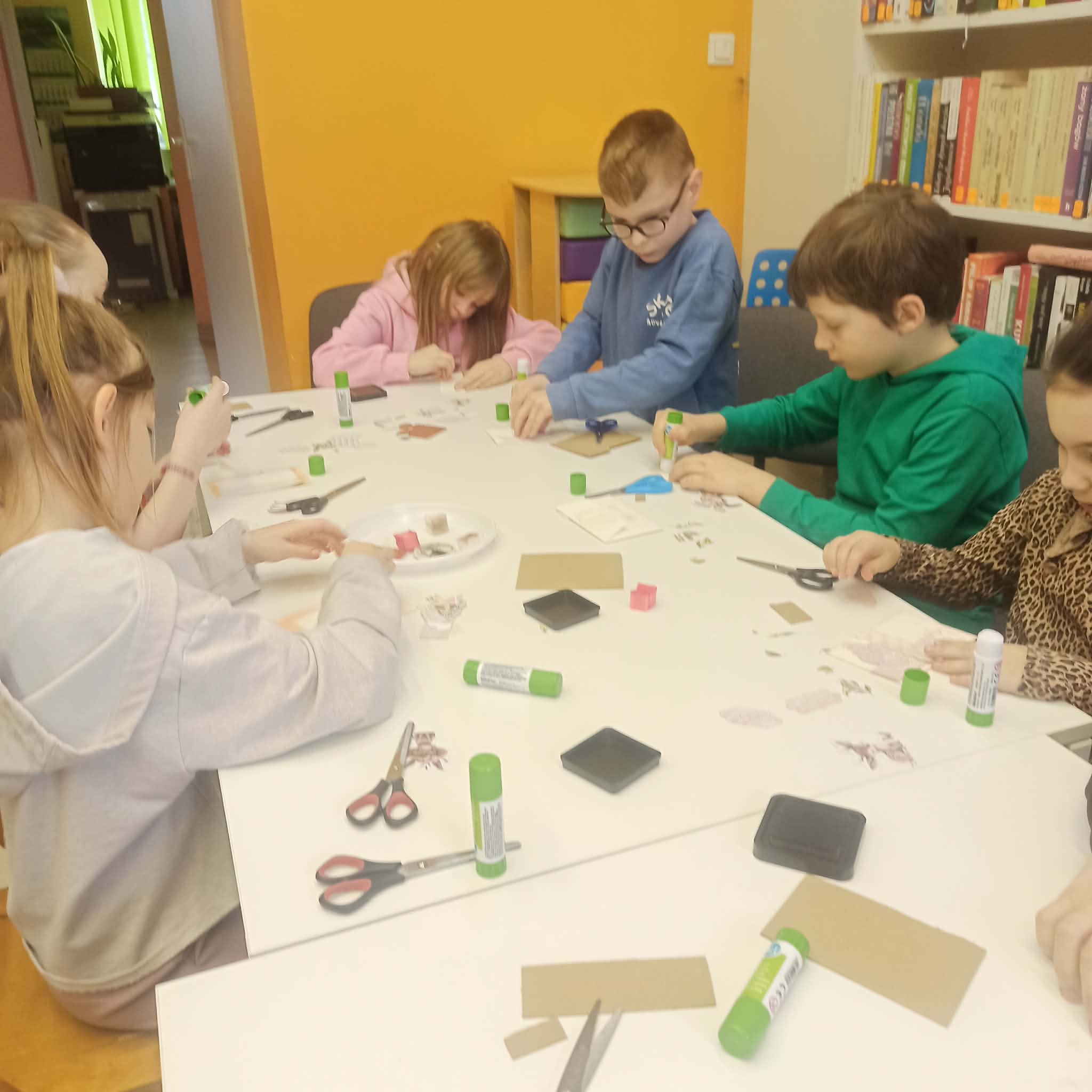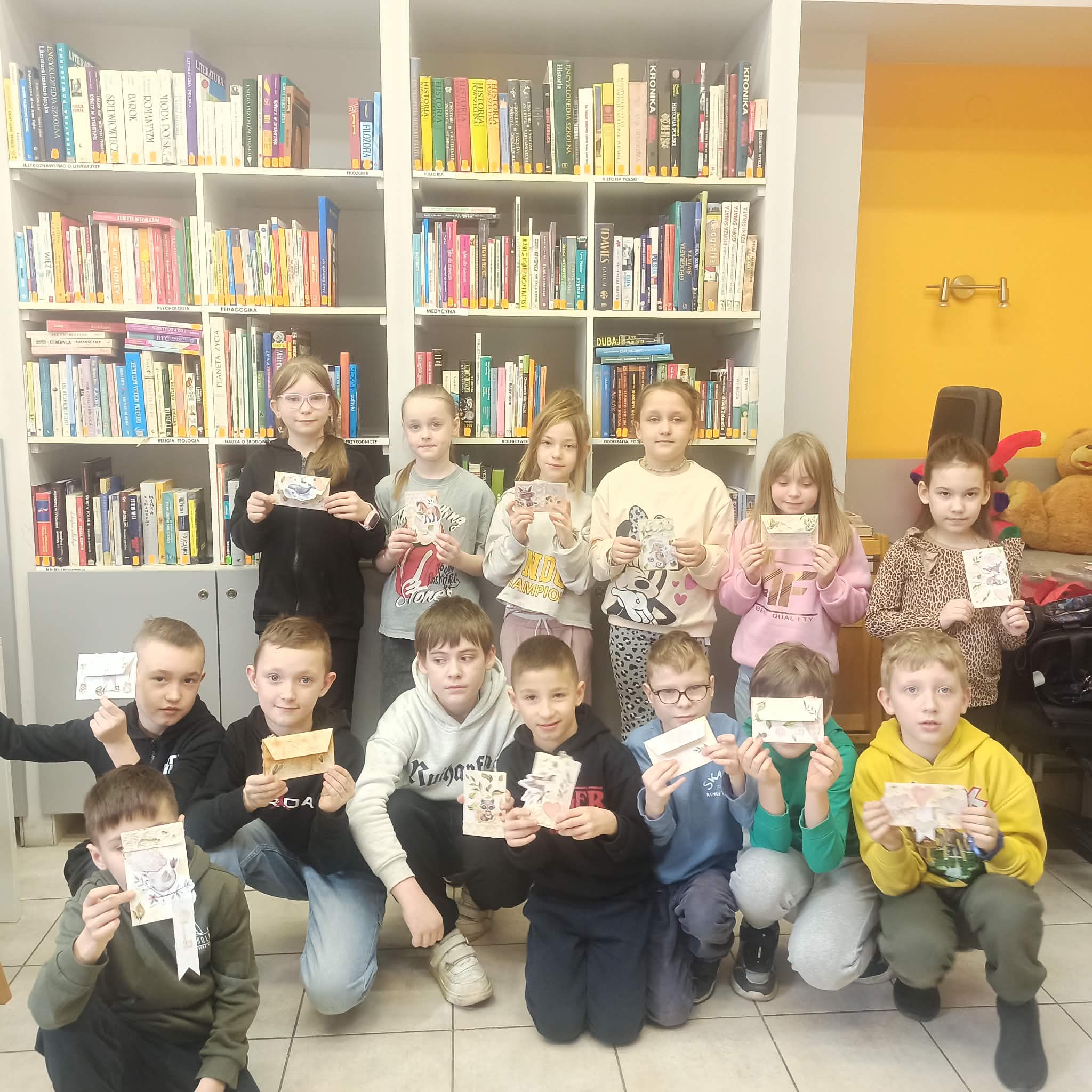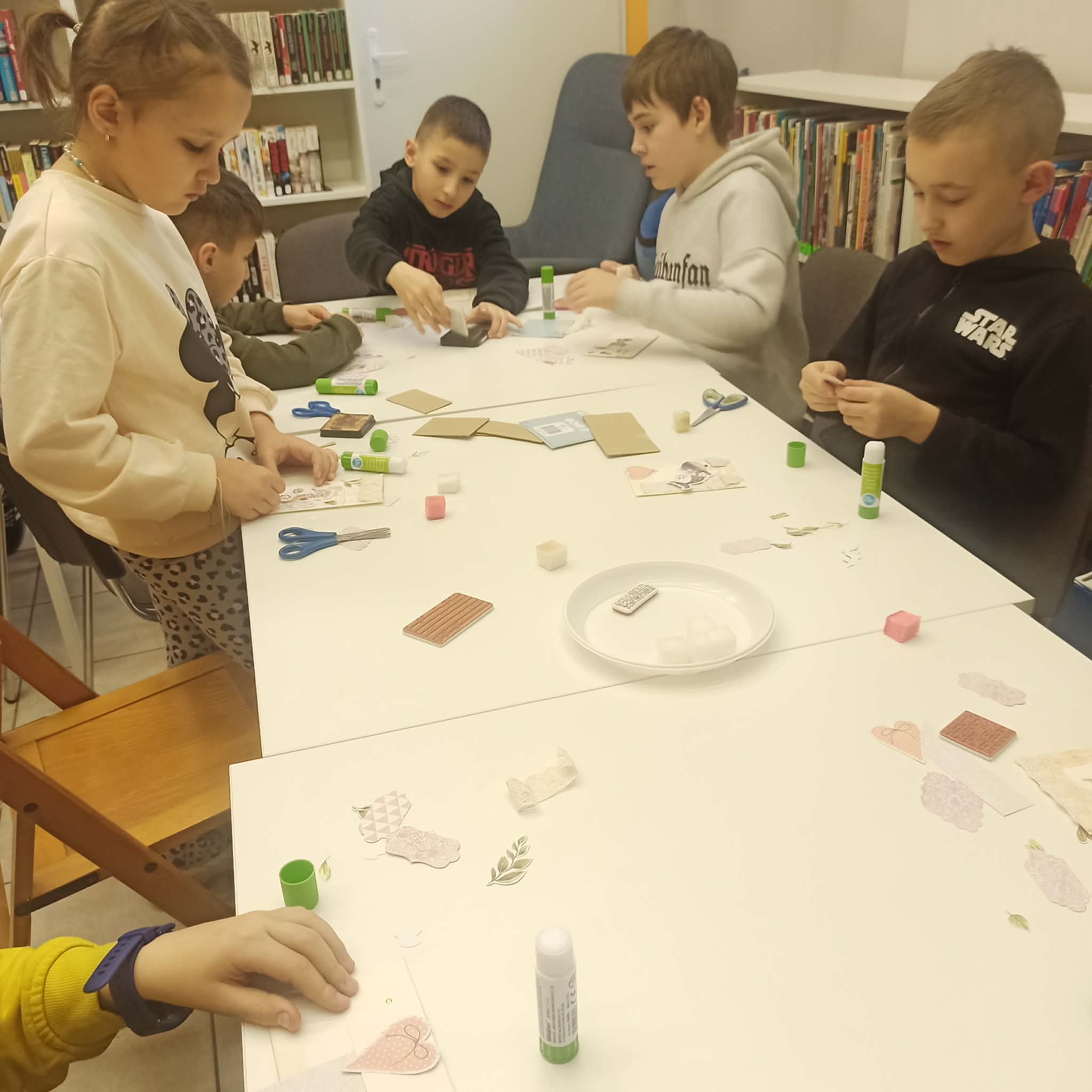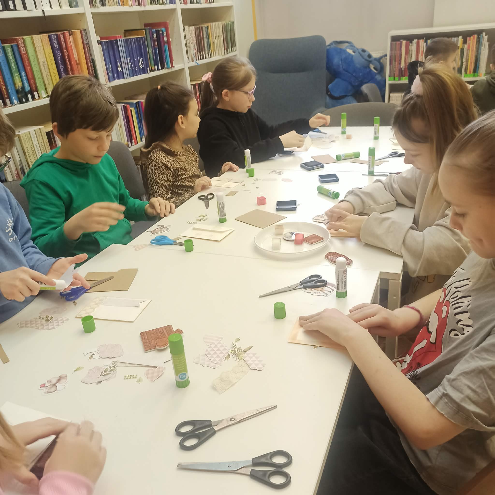 Uczniowie klasy IIa zostali zaproszeni do biblioteki rejonowej na warsztaty scrapbookingu, które okazały się nie tylko ciekawą formą spędzenia czasu, lecz także inspirującą lekcją kreatywności i cierpliwości. Podczas zajęć dzieci miały okazję poznać podstawowe techniki zdobienia papieru, pracować z różnorodnymi materiałami oraz rozwijać swoją wyobraźnię. Każdy uczestnik samodzielnie wykonał piękną ozdobną kopertę, zwracając uwagę na detale i indywidualny charakter swojej pracy. Warsztaty przebiegały w miłej, twórczej atmosferze, sprzyjającej integracji oraz radości z tworzenia, a gotowe prace stały się powodem do dumy dla młodych artystów.
