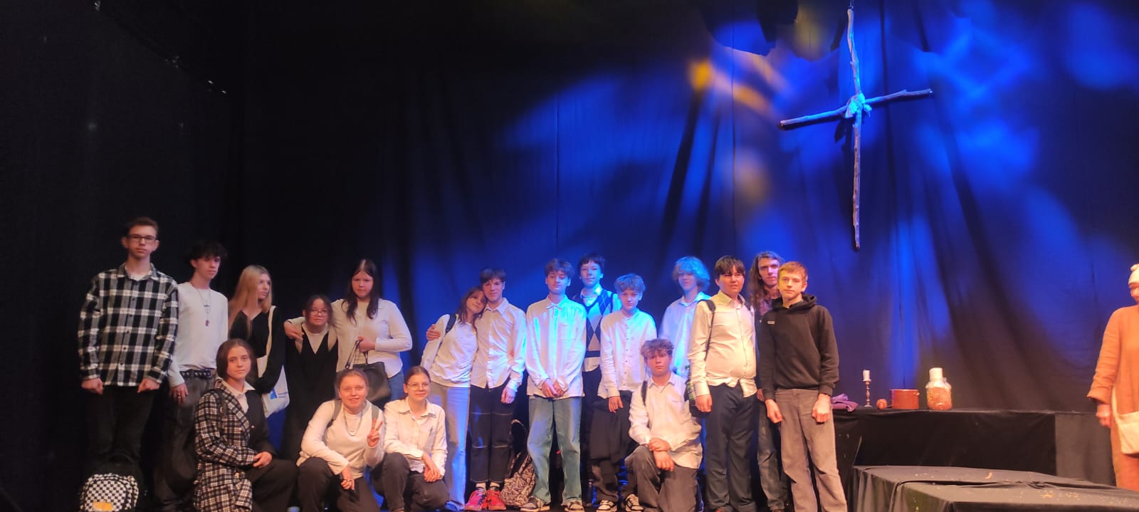 Z kolei 14 listopada ósmoklasiści wybrali się do Teatru Monopolis na "Dziady, część II" Adama Mickiewicza. Spektakl zachwycił nastrojową muzyką, ciekawą interpretacją i znakomitą grą aktorów. Scenografia i efekty świetlne wprowadziły widzów w tajemniczą atmosferę obrzędu dziadów, pozwalając lepiej zrozumieć symbolikę i znaczenie dramatu.