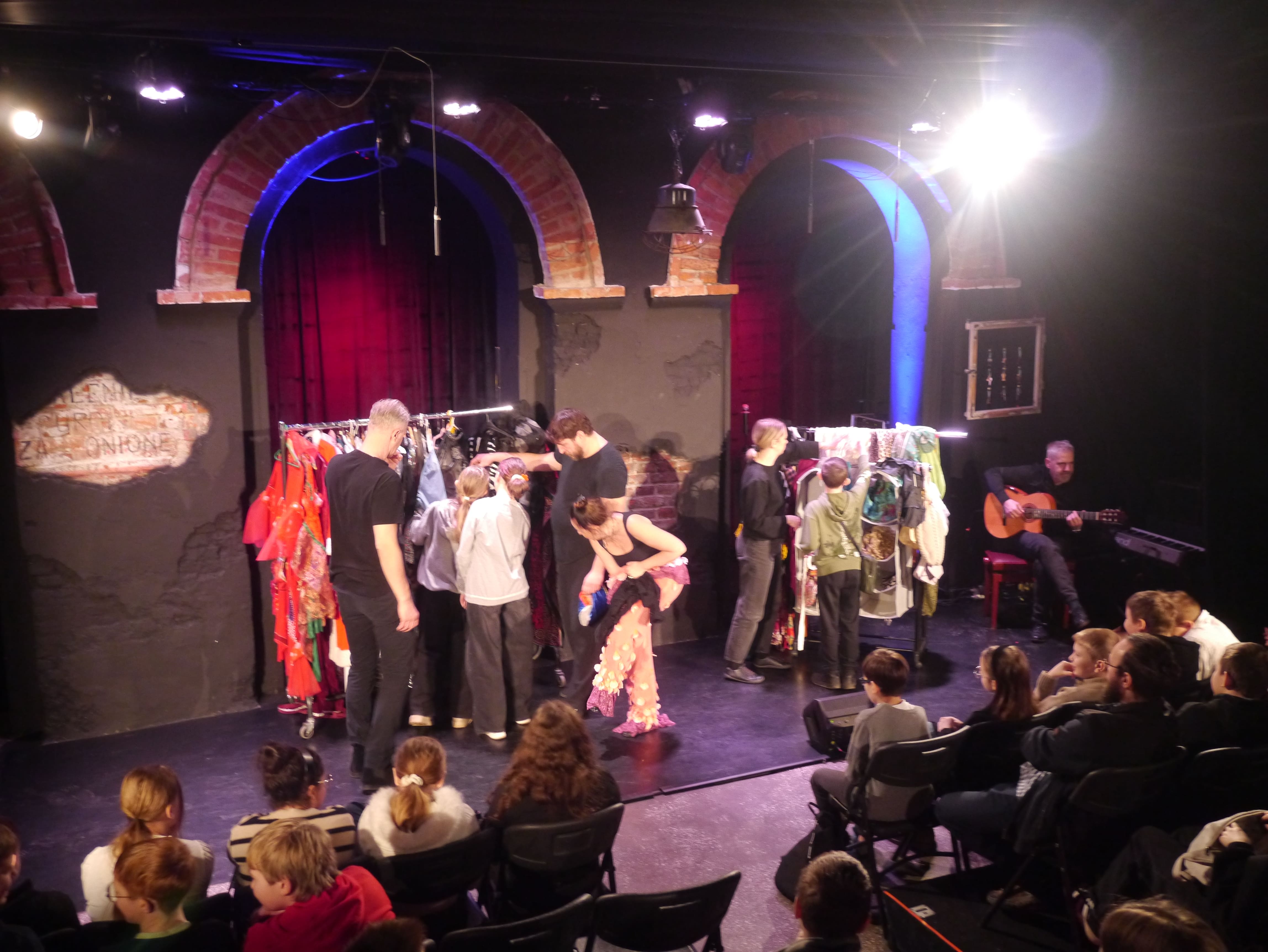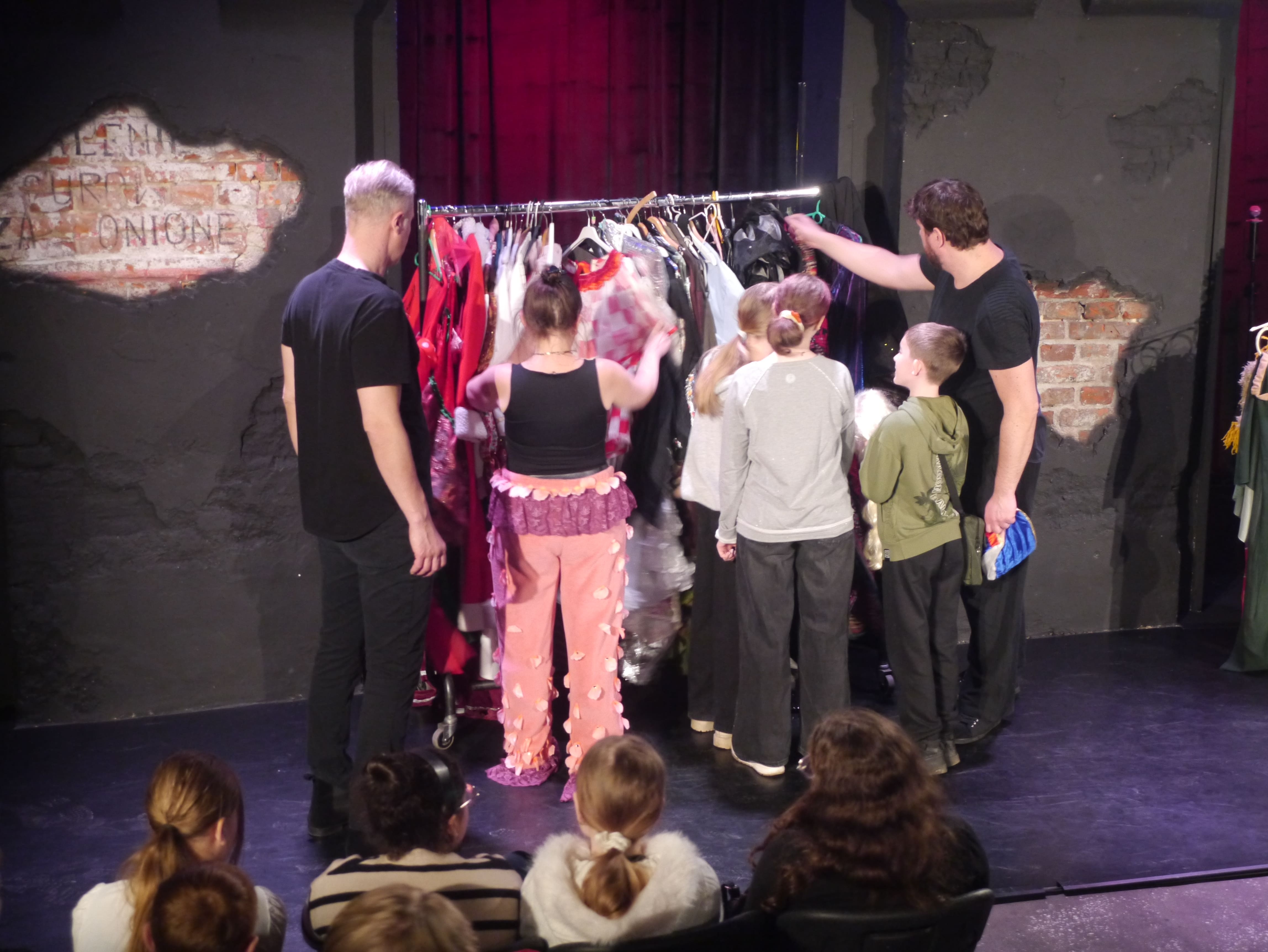 Spektakl miał formę improwizowaną, co oznaczało, że aktorzy tworzyli sceny na bieżąco, korzystając z pomysłów podawanych przez publiczność. Uczniowie chętnie zgłaszali swoje propozycje bohaterów, miejsc akcji i niezwykłych wydarzeń, a artyści w zabawny i kreatywny sposób wplatali je w historię. Każda scena była inna i niepowtarzalna, co sprawiło, że wszyscy z zaciekawieniem śledzili rozwój wydarzeń.