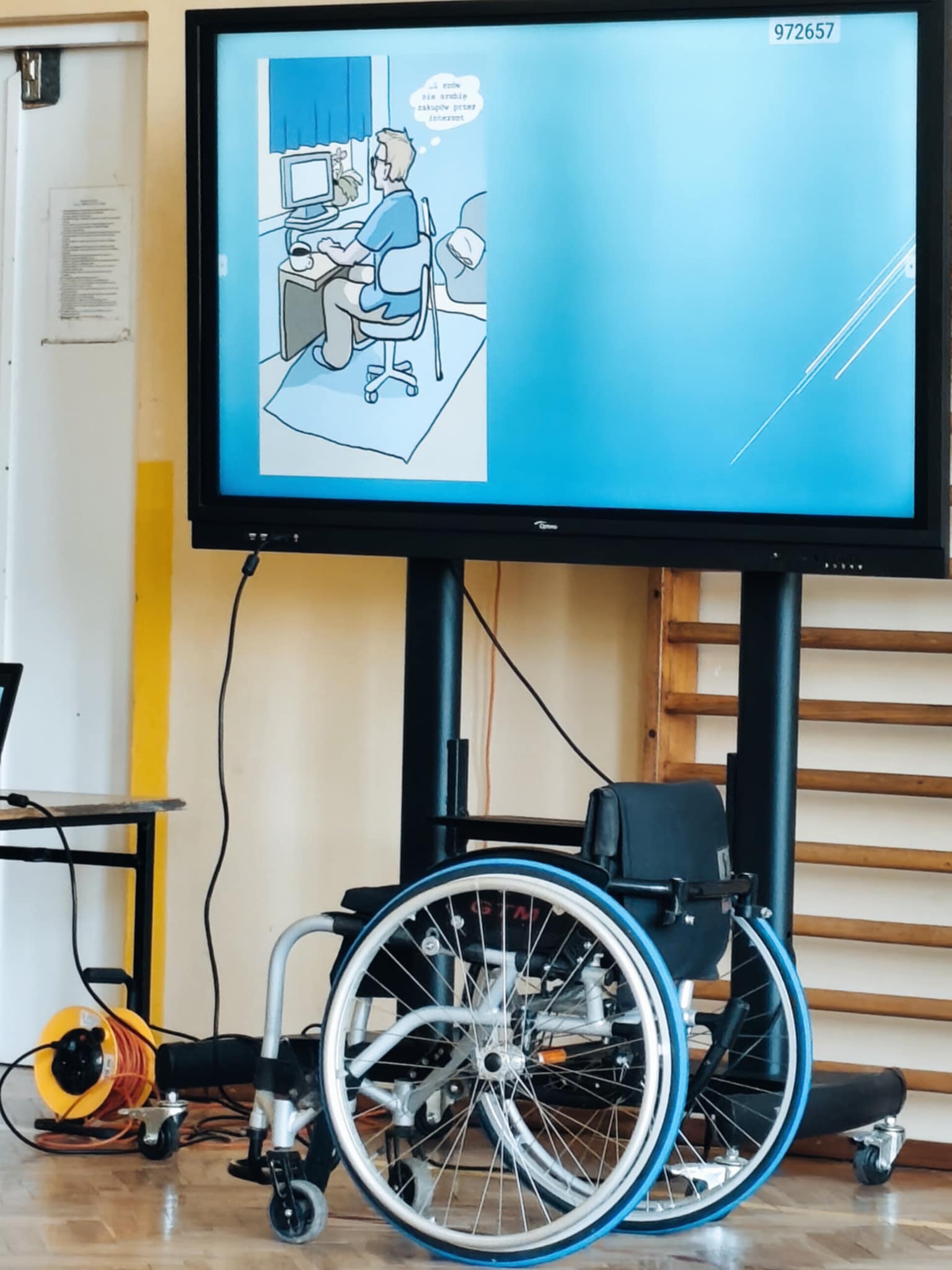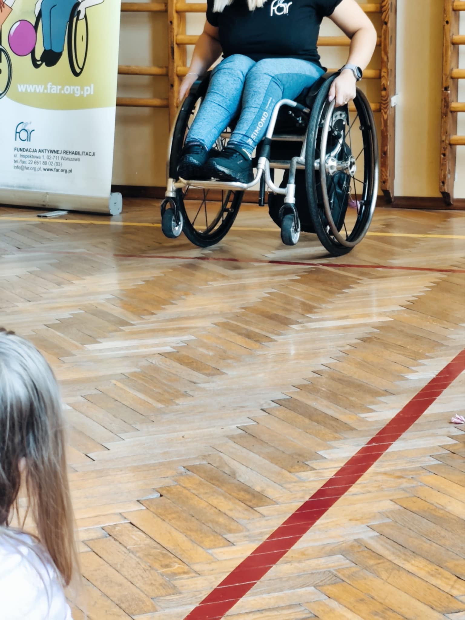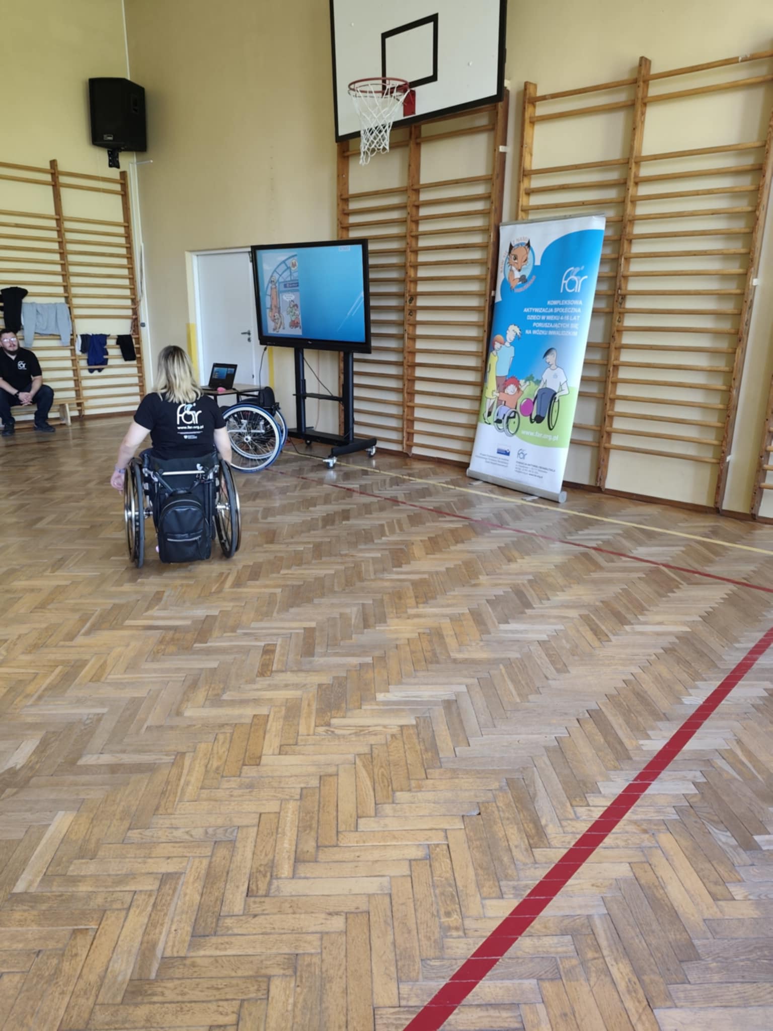 Największe zainteresowanie wzbudziła część praktyczna spotkania, podczas której uczniowie mogli spróbować swoich sił w poruszaniu się na wózku inwalidzkim. To doświadczenie pozwoliło im w praktyce przekonać się, jak wiele wysiłku i zręczności wymaga codzienne funkcjonowanie osób z niepełnosprawnościami.