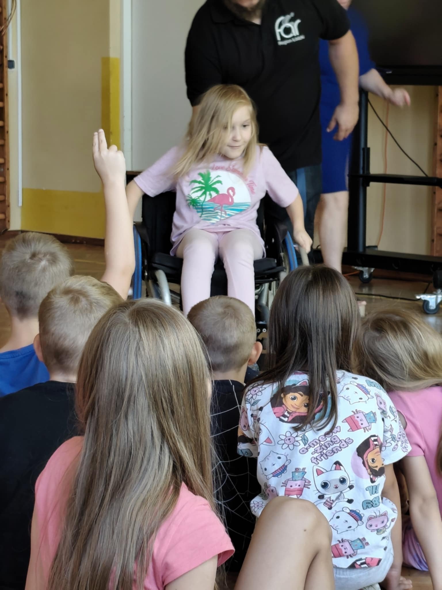 W dniu 10 września, dzięki zaangażowaniu państwa Sebastiana i Katarzyny Sęczkowskich, gościliśmy w naszej szkole panią Anię Pilch-Stasiak oraz Huberta Skowrona z Fundacji Aktywnej Rehabilitacji FAR regionu łódzkiego. Podczas zajęć uczniowie mieli okazję bliżej poznać temat niepełnosprawności – jej różne rodzaje oraz zasady savoir-vivre wobec osób z niepełnosprawnościami.